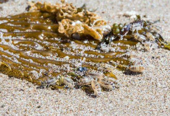在距離海水稍遠的海灘生活著沙蚤,它們的食物是沖積到海岸上的海藻團,美國加州大學圣巴巴拉分校海岸海洋生態(tài)學家珍妮·杜根(Jenny Dugan)說:“不要將它們認為是‘海灘上的跳蚤’,因為它們不會像跳蚤一樣對你的寵物吸血?!?a href="http://www.obhc.cn/pwb/">排污泵