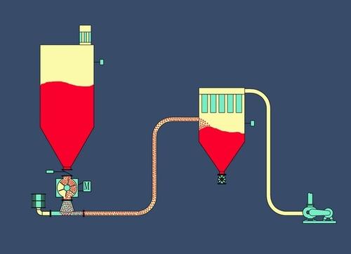 密相氣力輸送原理:密相輸送時(shí),顆粒在少量氣體松弛的流動(dòng)狀態(tài)下進(jìn)行集體運(yùn)動(dòng),但不是氣體引起的加速,而是通過靜壓差移動(dòng)。在供給過程中,物料通過氣動(dòng)閥重力進(jìn)料到發(fā)送罐中,置換出的空氣通過排氣閥排出。發(fā)送罐液位計(jì)的高警報(bào)后,進(jìn)料完成,進(jìn)料閥門與排氣閥門同時(shí)被關(guān)閉,而后通過進(jìn)氣閥向發(fā)送罐頂部及底部加入壓縮氣,加人的壓縮氣與物料相混合,罐內(nèi)的壓力達(dá)到設(shè)定值時(shí)便自動(dòng)打開底部出料閥,然后物料以栓狀流形式輸送,直至物料排空,關(guān)閉出料閥,完成一次輸送循環(huán),繼續(xù)進(jìn)行下一次輸送循環(huán)。密相發(fā)送罐氣力輸送有單發(fā)送罐輸送和雙發(fā)送罐輸送:單發(fā)送罐輸送,物料在管道內(nèi)不是被連續(xù)輸送;雙發(fā)送罐輸送,因?yàn)槠渲幸粋€(gè)發(fā)送罐輸送,另一個(gè)發(fā)送罐進(jìn)料,兩個(gè)發(fā)送罐交替操作,物料在管道內(nèi)連續(xù)輸送,可以連續(xù)生產(chǎn)。輸送氣體常采用空氣和氮?dú)?,?dòng)力一般由壓縮機(jī)供給。