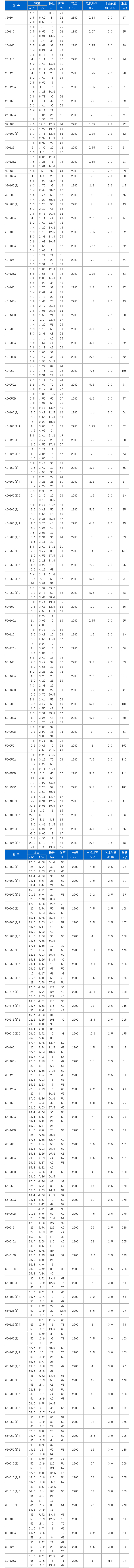 管道泵因利用離心力實(shí)現(xiàn)介質(zhì)輸運(yùn),有著優(yōu)越的流體增壓能力,故而被廣泛用于工業(yè)和城市排水,對于設(shè)備使用者而言,了解管道增壓泵選型表可以更準(zhǔn)確的為自己選擇合適的設(shè)備,對此,可參閱由中成泵業(yè)整理的以下內(nèi)容。
